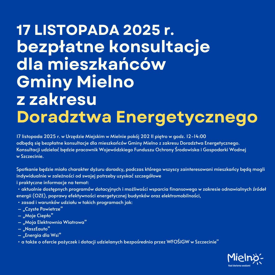 Bezpłatne konsultacje dla mieszkańców Gminy Mielno z zakresu Doradztwa Energetycznego
