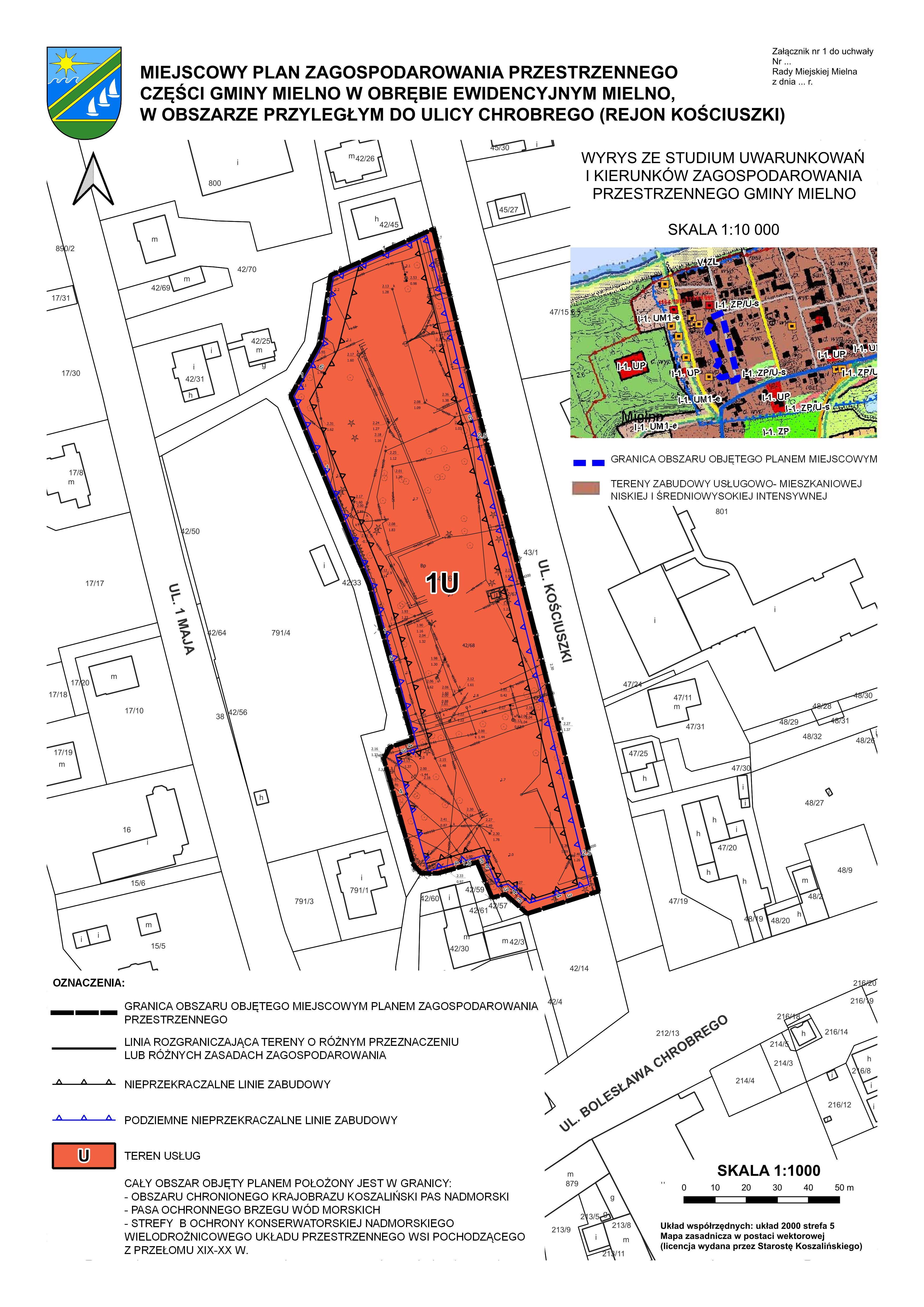 Projekt miejscowego planu zagospodarowania przestrzennego części gminy Mielno w obrębie ewidencyjnym Mielno, w obszarze przyległym do ulicy Chrobrego.